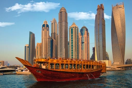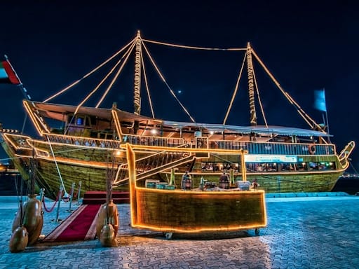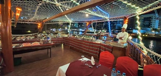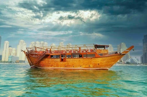 Enjoy a scenic evening cruise along Dubai Marina aboard a traditional dhow, complete with a delicious dinner and stunning views of the skyline.